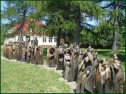 - ↑ "Thus the region adjoining the Carpathians and extending to a line Tarnów–Rzeszów–Jarosław, the hithero almost uninhabited regio pedemontana was settled by German-speaking Silesians and soon abounded in large Waldhufendorfer with Frankish hides and in towns whose German names were in many case identical with place-names in Silesia (Landskron, Grunberg, [...] Göttinger Arbeitskreis. Eastern Germany. Holzner-Verlag, 1961. p. 79.; "Vorgebirgslandschaften infolge der hautigen Einfällen der Litauer verwünstet und leer antraf, siedelte er Leute des deutsches Volkes in jenen Gebieten an, die auch heute noch in den Dörfern um Przeworsk, Przemyśl, Sanok und Jarosław wohnen und, wie ich selbst gesehen habe, ausgezeichnete Landwirte sind. Noch in der Gegenwart werden die Bewohner der alten regio pedemontana, von ihren Nachbarn als "Głuchoniemcy" (Walddeutsche) bezeichner [...]". [in:] Katharine Bechtloff. Julius Krämer. Hilfskomitee der Galiziendeutschen. Heimat Galizien. 1965.
