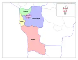 The department of Donga was created in 1999 when it was split off from Atakora Department. Its capital is Djougou.[7] Donga is subdivided into five communes, each centered at one of the principal towns: Bassila, Copargo, Djougou Rural, Djougou Urban and Ouaké.[8]