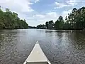 The Sabine, Trinity, Neches, Angelina and Sulphur rivers are the major rivers in East Texas, but the Brazos and Red rivers also flow through the region. The Brazos cuts through the southwest portion of the region, while the Red River forms its northern border with Oklahoma and a portion of Arkansas. In East Texas and the rest of the South, small rivers and creeks collect into swamps called bayous and merge with the surrounding forest. Bald cypress and Spanish moss are the dominant plants in bayous. The most famous of these bayous are Cypress Bayou and Buffalo Bayou. Cypress Bayou surrounds the Big, Little, and Black Cypress rivers around Jefferson. They flow east into Caddo Lake, and the adjoining wetlands cover the rim and islands of the lake.