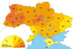 A large majority of voters in eastern Ukraine (83% or more in each oblast) approved Ukraine's declaration of independence in the 1991 referendum, though the majority was not as big as in the west.[16][17]