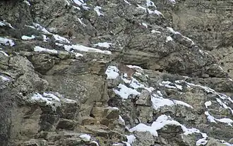 Two well camouflaged mountain goats near Emarat, East Azerbaijan village.