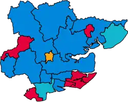 The administrative county and County Council was formed in 1889.[36] The county was made a non-metropolitan county (a new type of administrative county) in 1974, meaning the role of the administrative county was redefined, as part of the 1970s local government reorganisation.[37] Its present boundaries were set in 1998 when Thurrock and Southend-on-Sea were separated from the non-metropolitan county to become unitary authorities.[38]