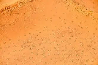 Until 2014, the phenomenon was only known to occur in the arid grasslands of the Namib desert in western parts of Southern Africa, being particularly common in Namibia. In that year, ecologists were alerted to similar rings of vegetation outside Africa, in a part of the Pilbara in Western Australia.[1][2]