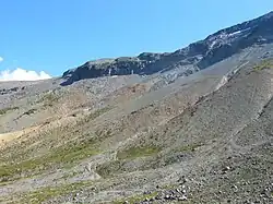 A fellfield or fell field comprises the environment of a slope, usually alpine or tundra, where the dynamics of frost (freeze and thaw cycles) and of wind give rise to characteristic plant forms in scree interstices.[1]