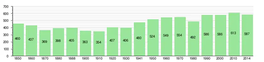 As of 2014, children and teenagers (0–19 years old) make up 19.4% of the population, while adults (20–64 years old) are 60.3% of the population and seniors (over 64 years old) make up 20.3%.[6] In 2015 there were 259 single residents, 270 people who were married or in a civil partnership, 42 widows or widowers and 29 divorced residents.[10]