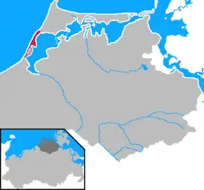 Fischland (literally "fish land") is an isthmus on the southern Baltic Sea coast on the Bay of Mecklenburg in northeastern Germany. It is part of the peninsula of Fischland-Darß-Zingst. Fischland was an island until the 14th century and was bounded by the navigable estuarine branches of the River Recknitz: the Permin in the south and the Loop in the north. In more recent times its southern boundary has usually been considered to be the Recknitz Meadowland (Recknitzer Stadtwiesen) and the Rostock Heath (Rostocker Heide). To the west and east its boundaries are more obvious: on the one side is its active cliffed coast on the Baltic, and on the other the coastline alongside the Saaler Bodden, only a few centimetres above sea level. Fischland is about 5 km long, between 500 metres and 2 km wide and runs from southwest to northeast.