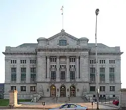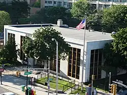 Five Corners is where the county seat of Hudson County is located. The Hudson County Courthouse is at Newark and Baldwin Avenues.40°43′53″N 74°3′29″W / 40.73139°N 74.05806°W. The Hudson County Administration Building, at 595 Newark Avenue, is home to many county agencies and departments. The Five Corners Branch of the Jersey City Free Public Library is sited on the intersection itself. The (original) Jersey City High School, now William L. Dickinson High School, at 2 Palisade Avenue 40°43′48″N 74°3′16″W / 40.73000°N 74.05444°W is nearby.