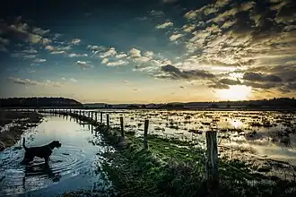 - Flood-meadow – Land adjacent to a river subject to seasonal flooding