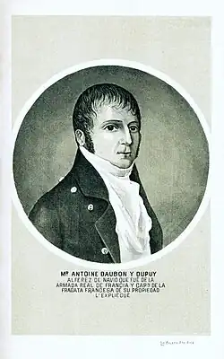 French Capt. Daubón, son of Jacobin French Revolutionary activist, Raymond Daubón, was one of three registered corsairs in the Caribbean's Commercial Tribunal of Basse-Terre, Guadeloupe, licensed to seize and capture enemy vessels on behalf of France.