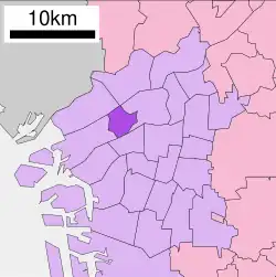 As of 1 August 2008, the ward has a population of 63,237,[1] and an area of 4.67 km2 (1.80 sq mi).[2] It is bordered by the Yodo River on the north, and the Dōjima River on the south.