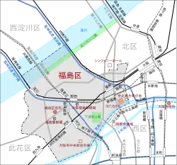 Fukushima-ku (福島区) is one of 24 wards of Osaka city in Japan. The ward is primarily a residential quarter, but has some office buildings and a commercial district, as well as factories and wholesale businesses. In recent years, many high rise apartment buildings and office buildings have been built in this ward, because it is close to the Umeda and Dōjima business centers.