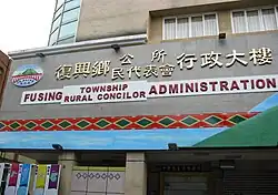Fuxing District (Atayal: Pyasan; Chinese: 復興區; pinyin: Fùxīng Qū), formerly known as Fuxing Township or Fu-Hsing Township (Chinese: 復興鄉; Hanyu Pinyin: Fùxīng Xiāng; Tongyong Pinyin: Fùsing Siang; Wade–Giles: Fu4-hsing1 Hsiang1) is a mountain indigenous district in eastern Taoyuan City, Taiwan. The main population is the Atayal people of the Taiwanese aborigines. Lala Mountain (拉拉山) is a major feature of Fuxing, and the Shimen Reservoir, formed by Shimen Dam, is a popular nearby site. Fuxing District is, by area, the largest district in Taoyuan City.