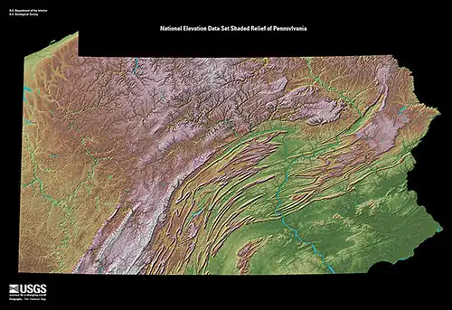 - ↑ Smaller streams cutting the Ridge and Valley Appalachians in Pennsylvania are east to west, the Lehigh River, the Little Schuylkill River, the Schuylkill River, the Juniata River and Clearfield Creek.
