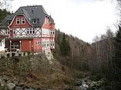 During the post-war period the spot ended up in East Germany and the hotel building was operated until the mid-1970s as a Handelsorganisation pub. Later it was converted and used as a works holiday home for the VEB Elektroaaparatewerke Berlin-Treptow, a German electrical machinery combine. The holiday home also had a public restaurant . When the building was converted, the romantic woodland path to the pub, which ran along the northern side of the Holtemme and past the waterfall, was blocked. Today the footpath runs along the southern bank of the river.