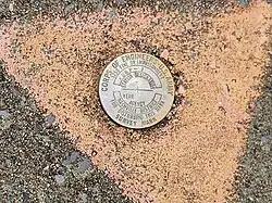All sorts of different objects, ranging from the familiar brass disks to liquor bottles, clay pots, and rock cairns, have been used over the years as survey markers.[1] Some markers have been used to designate tripoints, or the meeting points of three or more countries. In the 19th century, these marks were often drill holes in rock ledges, crosses or triangles chiseled in rock, or copper or brass bolts sunk into bedrock.
