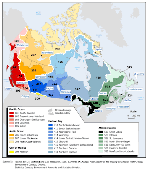 - 1 2 3 4 5 "Drainage Basin". thecanadianencyclopedia. Archived from the original on 8 June 2011. Retrieved 21 February 2008.