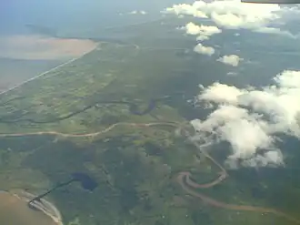 To the east, near the Nicaraguan border, the Caribbean lowlands broaden to an extensive area known as La Mosquitia.[1] Unlike the western part of the Caribbean lowlands, the Mosquitia is Honduras's least-developed area.[1] Underpopulated and culturally distinct from the rest of the country, the area consists of inland savannah with swamps and mangrove near the coast.[1] During times of heavy rainfall, much of the savannah area is covered by shallow water, making transportation by means other than a shallow-draft boat almost impossible.[1]