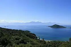 Several islands in the gulf fall under Honduras's jurisdiction.[1] The two largest, Zacate Grande and El Tigre, are eroded volcanoes, part of the chain of volcanoes that extends along the Pacific coast of Central America.[1] Both islands have volcanic cones more than 700 m (2,300 ft) in elevation that serve as landmarks for vessels entering Honduras's Pacific.[1]