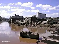The high rainfall caused many rivers in the country to overflow "to an unprecedented extent this century", as described by the United Nations.[9] Two earthflows caused significant damage near Tegucigalpa.[10] Hurricane Mitch wrought significant damage to Honduras, affecting nearly the entire population and causing damage in all 18 departments.[9] The United Nations Economic Commission for Latin America and the Caribbean estimated that Mitch caused the worst floods of the 20th century in the country.[11] Throughout Central America, Mitch claimed in excess of 11,000 lives, with thousands of others missing.