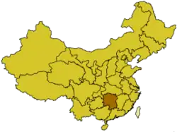Hunan is a landlocked province situated in the Central China and central portion of Yangtze River, Hunan spans from 108°47′ to 114°15′ longitude and 24°39′ to 30°8′. Hunan shares land borders with Jiangxi to the east, Guangdong and Guangxi to the south, Guizhou to the west, Chongqing to the northwest, and Hubei to the north. Hunan is 667-kilometre (414 mi) from east to west, 774-kilometre (481 mi) from south to north, with a land area of 211,800-square-kilometre (81,800 sq mi), making it the 10th largest province in China. Hunan is ringed on three sides by mountains and hills, it looks like a horseshoe.[1] Of Hunan's total area, 51.2% consists of hilly area, 13.9% consists of basin, 13.1% consists of plain, 15.4% consists of hills, 6.4% consists of water.[2]