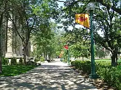 Minnesota contains some of the oldest rocks found on earth, gneisses some 3.6 billion years old, or 80% as old as the planet.[3][4] About 2.7 billion years ago, basaltic lava poured out of cracks in the floor of the primordial ocean; this volcanic activity created the Canadian Shield in northeast Minnesota.[3][5] The roots of these volcanic mountains and the action of Precambrian seas formed the Iron Range of northern Minnesota. Following a period of volcanic activity 1.1 billion years ago, Minnesota's geological activity has been more subdued, with no volcanism or mountain formation, but with repeated incursions of the sea which left behind multiple strata of sedimentary rock.[3]
