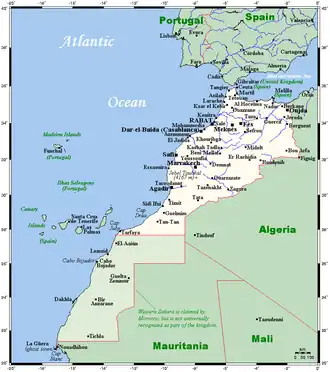 This is a list of the extreme points of Morocco, the points that are farther north, east or west than any other location.