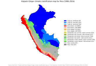 Peru map of Köppen climate classification zones