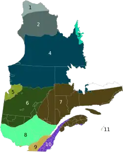 - 1 2 "Types de végétations du Québec". Types of vegetation and climatic zones of Quebec (in French). Government of Quebec. Archived from the original on August 27, 2011. Retrieved June 22, 2011.