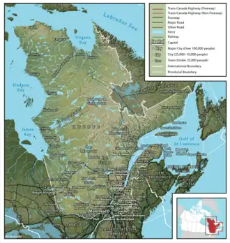 - ↑ Institut de la statistique du Québec. "Comparaison entre la superficie du Québec et celle de divers pays" [Comparison between the area of Quebec and various countries] (in French). Government of Quebec. Archived from the original on August 8, 2011. Retrieved July 4, 2011.