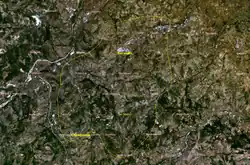 While San Marino has no official protected areas, it has a law prohibiting the cutting down of any tree over 10 centimetres (3.9 in) in diameter, meaning that most trees within the country are legally protected.[4] Under the FRA 2010 Categorization of Forests, all of the land area of San Marino is considered "Other land", with none being "Forest" or "Other wooded land".[5] Despite the fact that 16% of the country is woodlands, predominantly of oaks and other broadleaves as Quercus pubescens, Fraxinus ornus, Ostrya carpinifolia, Acer obtusatum, Quercus cerris, Quercus ilex, Populus nigra, Salix alba. Shrublands and similar lands are dominated by Crataegus monogyna, Cornus sanguinea, Spartium junceum, Rubus ulmifolius, Rosa canina, Prunus spinosa, Quercus pubescens, Fraxinus ornus and Ulmus minor cover the 17%. Badlands are only 4% of the country, and less than 1% is covered by rivers.[6]