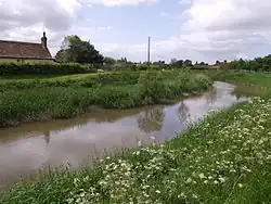 The River Brue flows through the Somerset Levels to the east of the Polden Hills. It rises in hills near the southern border of the county, flows through Bruton, where it is joined by the River Pitt, and on through Baltonsborough. The lower reaches have been diverted into a channel that joins the Parrett at Burnham-on-Sea in Bridgwater Bay. There is a raised bog in the central Brue valley and the surrounding area is a mosaic of swamps, meres and alder woodland.[9] The River Parrett rises in the hills around Chedington in Dorset and flows northwestwards past Aller, Somerset, and through the Somerset Levels to Bridgwater, after which it becomes an estuary with its mouth at Burnham-on-Sea. The river has a tidal bore, similar to that in the River Severn. The Somerset Levels are only a few feet above sea level and liable to flooding. They are drained by ditches and channels that drain into the Parrett including the King's Sedgemoor Drain, just south of the Polden Hills.[9]