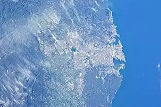 According to the Senseable City Lab at the Massachusetts Institute of Technology (MIT), which measures canopy cover in the world's most prominent cities, the Sydney area had a Green View Index of 25.9% – This represents the total percentage of the city covered by urban trees. Tying with Vancouver at that percentage, Sydney is the third prominent city in the world with the most trees after Singapore and Oslo, respectively.[48] Because the Sydney metropolitan area is encircled by a large area of bushland and forest to the north, west and south of its peripheries,[49] bushfires can ring the region during intense bushfire seasons; this natural phenomenon that surrounds Sydney has been labelled "ring of fire".[50][51][52][53]