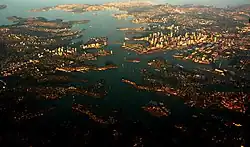 There are more than 70 harbour and ocean beaches in the urban area. Most of Sydney's water storages are on tributaries of the Nepean River. Parramatta River drains a large area of Sydney's western suburbs.[7] With 5,005,400 inhabitants (as of 2016) and an urban population density of 2037 people per square kilometre, Sydney's urban area covers 1,788 km2 (690 sq mi),[8] comprising 35% of Sydney and is constantly growing.[9]