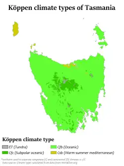 - ↑ Discover Tasmania. "Climate and weather". Writer for Discover Tasmania. Tasmania, Australia: Discover Tasmania. Retrieved 27 October 2016.