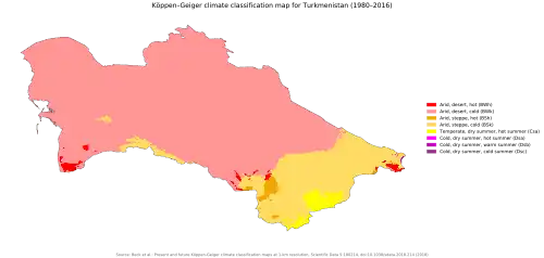 - ↑ "Third National Communication of Turkmenistan Under the United Nations Framework Convention on Climate Change" (PDF). Ministry of Nature Protection of Turkmenistan. 2015. pp. 12–13. Archived (PDF) from the original on 25 October 2016. Retrieved 15 April 2022.