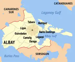 The longest river is the Cagayan River in northern Luzon, measuring about 520 kilometers (320 mi).[22] Manila Bay,[23] upon the shore of which the capital city of Manila lies, is connected to Laguna de Bay,[24] the largest lake in the Philippines, by the Pasig River.[25] Subic Bay,[26] Davao Gulf,[27] and the Moro Gulf are other important bays.[28] The San Juanico Strait separates the islands of Samar and Leyte but it is traversed by the San Juanico Bridge.[29] The Puerto Princesa Subterranean River, which runs 8.2 kilometers (5.1 mi) underground through a karst landscape before reaching the ocean, is a UNESCO World Heritage Site.[30]