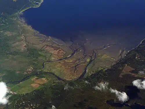 - ↑ Bart Makaske, "Anastomosing rivers: a review of their classification, origin and sedimentary products", Earth-Science Reviews, 53: 3–4, 2001, pp. 149–196, ISSN 0012-8252, https://doi.org/10.1016/S0012-8252(00)00038-6.