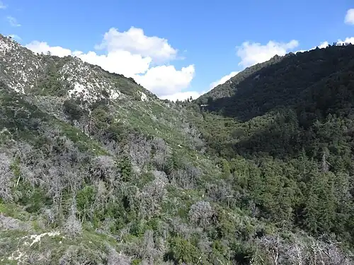 - A pass, notch, or opening in a ridge or mountain range, originally carved by a watercourse flowing through it but which is now dry as a result of stream capture. Contrast water gap.