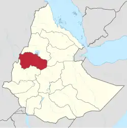During the 18th century, Gojjam's western neighbors were Agawmeder in the southwest and Qwara in the northwest. Agawmeder, never an organized political entity, was gradually absorbed by Gojjam until it reached west to the Sultanate of Gubba; Juan Maria Schuver noted in his journeys in Agawmeder (September 1882) that in three prior months, "the Abyssinians considerably advanced their frontier towards the West, effacing what was left of the independent regions."[1] Gubba acknowledged its dependence to Emperor Menelik II in 1898, but by 1942 was absorbed into Gojjam.[2] Dek Island in Lake Tana was administratively part of Gojjam until 1987. The capital city is Bahir Dar.