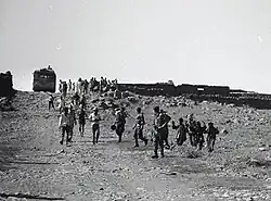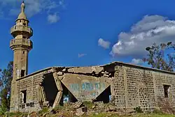 In 1868, the region was described as "almost entirely desolate". According to a travel handbook of the time, only 11 of 127 ancient towns and villages in the Golan were inhabited.[78] By the late 19th century, the Golan Heights was mostly inhabited by Arabs, Turkmen and Circassians.[79] The Circassians, part of a large influx of refugees from the Caucasus into the empire as a result of the Russo-Turkish War of 1877–78, were encouraged to settle in the Golan by the Ottoman authorities. They were granted lands with a 12-year tax exemption.[80][81][82] The Al Fadl, the Druze and the Circassians were often in conflict for local dominance. These struggles subsided with the Ottoman government's formal recognition of the Al Fadl's tribal territory and pasturelands in the Golan, which were invested in the name of the tribe's emir. The emir relocated to Damascus and collected rents from his tribesmen who thereafter settled in the area and engaged in a combination of farming and pastoralism.[75] The tribe settled in several villages in the area and controlled important roads to Damascus, Galilee and Lebanon.[83] In the 19th century the tribe continued to expand their territory in the Golan and built two palaces.[83] The leader of the tribe joined Prince Faisal during the Arab revolt,[84] and they supported the uprising against the French in the northern Golan.[84]