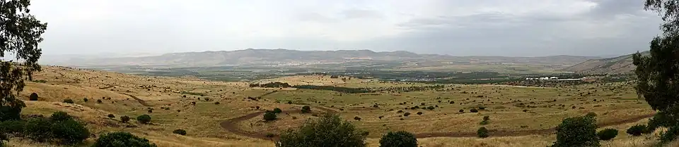 The Arabic name is Jawlān,[29] sometimes romanized as Djolan, which is an Arabized version of the Canaanite and Hebrew name.[30] Arab cartographers of the Byzantine period referred to the area as jabal (جَبَل, 'mountain'), though the region is a plateau.[31]