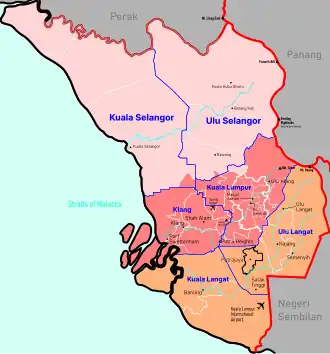 Selangor decided to revise their district areas which not only affect the former Kuala Lumpur district but also neighbouring districts of Klang, Hulu Selangor and Hulu Langat where from parts of those districts, two new districts has been created namely Gombak and Petaling. Sepang, while not originally part of any of Kuala Lumpur areas, was also made a full district due to the revisions, carved out from Hulu Langat and Kuala Langat district.[5]