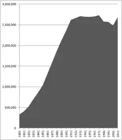 The conurbation was "a Victorian metropolis, achieving its commercial peak during 1890–1915".[26] In the 1910s, local government reforms to administer this conurbation as a single entity were proposed.[27] Use in a municipal context appeared in a 1914 report submitted in response to what was considered to have been the successful creation of the County of London in 1889.[27] The report suggested that a county should be set up to recognise the "Manchester known in commerce", and referred to the areas that formed "a substantial part of South Lancashire and part of Cheshire, comprising all municipal boroughs and minor authorities within a radius of eight or nine miles of Manchester".[27][28]