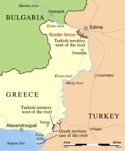 | Greece–Turkey border Σύνορα Ελλάδας–Τουρκίας Türkiye–Yunanistan sınırı | |