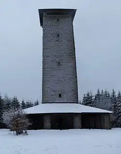 With its 827-metre-high (2,713 ft) peak the Große Kornberg is the northeast cornerstone of the Fichtel Mountains in south Germany. It forms a wooded ridge, which is recognisable from a long distance by its former military surveillance tower It is also the local 'house' mountain of Schönwald and Schwarzenbach an der Saale.