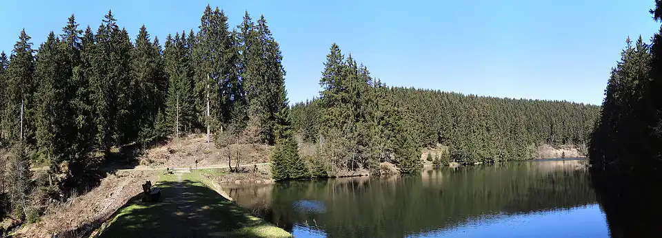 It is one of the Upper Harz Ponds and was constructed before 1673. After being raised in height at least once, the dam today is 7.5 metres high and just under 60 metres long.