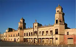 Numerous plans were made, but few were carried out or had impact until 1809. In that year, a group consisting of Miguel Hidalgo y Costilla, Ignacio Allende, Juan Aldama, Miguel Domínguez and more, began to plan an armed revolt against the colonial government. In 1810, the plot was discovered and Hidalgo decided to put their plans into action in September instead of the planned date in December.[29] On 15 September, Miguel Hidalgo y Costilla declared the Grito de Dolores in the town of Dolores (Hidalgo). Hidalgo, accompanied by Ignacio Allende, left Dolores with about 800 men, half of whom were on horseback.[30] Through sheer numbers, Hidalgo's army had some early victories,[31] progressing through the economically important and densely populated province of Guanajuato.[32] One of Hidalgo's first stops was at the Sanctuary of Atotonilco. There, Hidalgo affixed an image of the Virgin to a lance to adopt it as his banner.[33] He then inscribed the following slogans on his troops' flags: "Long live religion! Long live our most Holy Mother of Guadalupe! Long live Ferdinand VII! Long live America and death to bad government!"[34] The extent and the intensity of the movement took viceregal authorities by surprise.[32] San Miguel and Celaya were captured with little resistance.[31] On 21 September 1810, Hidalgo was proclaimed general and supreme commander after arriving at Celaya. At this point, Hidalgo's army numbered about 50,000.[31] However, due to lack of military discipline, the insurgents soon fell into robbing, looting and ransacking the towns they were capturing.[31] On 28 September 1810, Hidalgo arrived at the city of Guanajuato.[26] The town's Spanish and Criollo populations took refuge in the heavily fortified Alhóndiga de Granaditas granary defended by Quartermaster Riaños.[33] Hidalgo's army overwhelmed the defenses in two days and killed an estimated 400–600 men, women and children.[35] Fighting associated with the War of Independence would return near the end of the conflict. Military commanders Luis de Cortázar and Anastasio Bustamante joined forces with Agustín de Iturbide and took the city of Guanajuato on 8 July 1821, declaring the entire state independent of Spanish rule. In 1824, Guanajuato was officially proclaimed a state of Mexico by the Constitutional Congress of Mexico.[26]