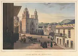The years after the end of the War of Independence were extremely unstable, and would continue to be unstable through most of the rest of the 19th century. The towns of Dolores and San Miguel adopted the names of Dolores Hidalgo and San Miguel de Allende in honor of those who began the independence movement and in 1826, the first constitution of the state of Guanajuato was adopted.[29] Like much of the rest of the country, Guanajuato was affected by the prolonged fighting between Liberal and Conservative factions as well as the foreign incursions that dominated the 19th century. Guanajuato's status vacillated between state (when Liberals were in charge) and department (when Conservatives held the upper hand). Under Liberal ideals, educational institutions such as the Colegio de la Santisima Trinidad and the Colegio de la Purisima Concepción were secularized and under control of the State.[29] In 1847, General Gabriel Valencia raised an army of 6,000 men to fight the U.S. invasion of Mexico. In 1848, in opposition to the Treaty of Guadalupe Hidalgo, General Marian Paredes, General Manuel Doblado and priest Celedonio Dómeco de Jarauta revolted, taking the state capital, but they were defeated and Doméco was executed by firing squad.[26] In 1855, Conservative Manuel Doblado, then the governor of Guanajuato, forced Juan Álvarez out of the presidency after he took power from Antonio López de Santa Anna.[29] In 1858, the government under President Benito Juárez moved from Mexico City to the city of Guanajuato before moving again to Manzanillo and then Veracruz during the Reform War. During this three-year period, the state would vacillate various times between the Liberals and Conservatives. In 1863, it was taken over by the French as they installed Maximilian I as emperor of Mexico. Maximillian did not reign long but the governor he appointed for Guanajuato, Florencio Antillón remained in Guanajuato until 1877.[26]
