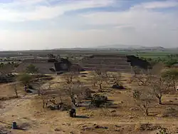 The state's best-known geographical region is the Bajío, a relatively low and flat area of between 1,700 and 1,800 meters that surrounds the Lerma River and its tributaries. Centered in Guanajuato, parts also extend into Querétaro and Jalisco.[12][19] This low area is the source of its name, coming from the Spanish word "bajo" or low.[20] The Bajío is filled with rolling hills and interrupted by the occasional chain of low mountains such as the Gavia and the Culiacán.[12] Before the Spanish arrived, this area was covered in dense forests of holm oak and mesquite trees, but mining's need for wood fuel eventually cleared them. Today, the area is the center of most of the state's agriculture and industry since the terrain allows for highways and large farms, which produce grains, vegetables and fruit.[20] This farmland is considered some of Mexico's most productive.[12]