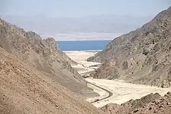 ![]() The Sinai Peninsula with the Gulf of Aqaba to the east and the Gulf of Suez to the west | |